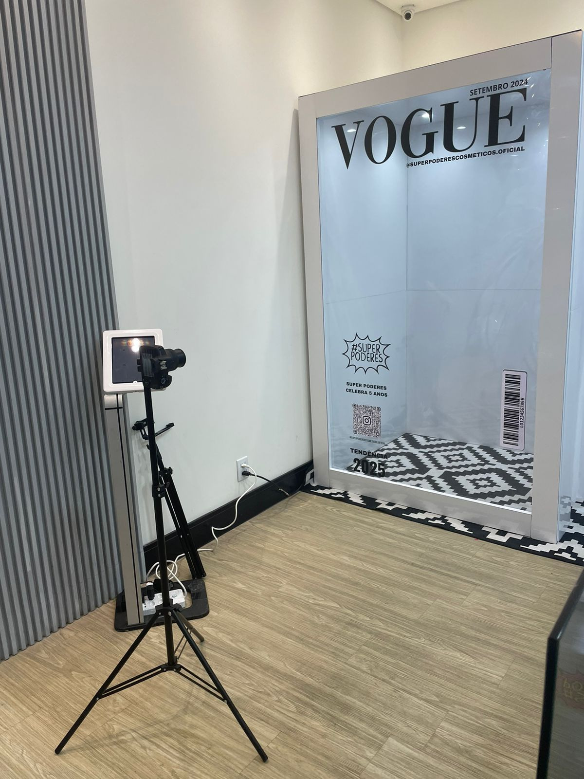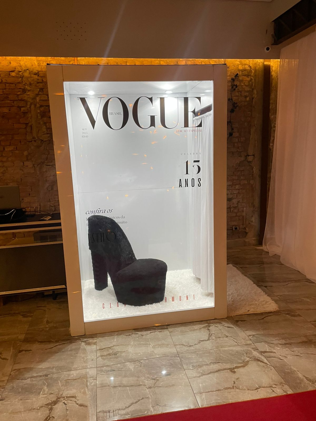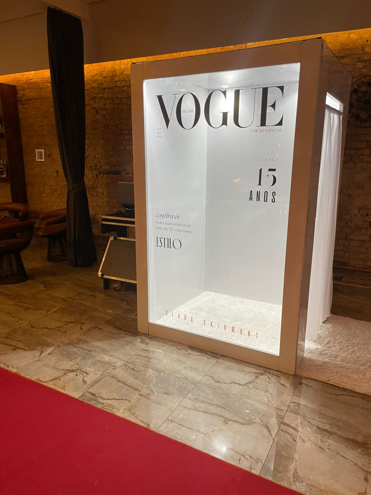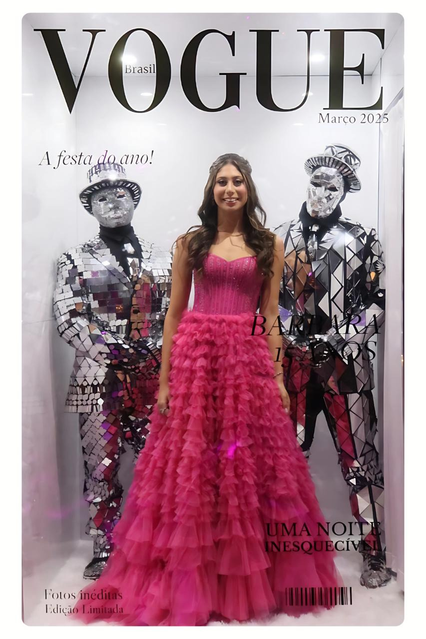 A "Cabine Revista" é uma experiência interativa e personalizada, onde os usuários podem tirar fotos como se estivessem na capa de uma revista famosa.