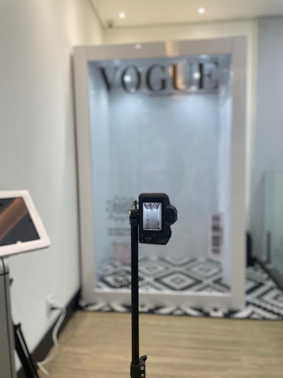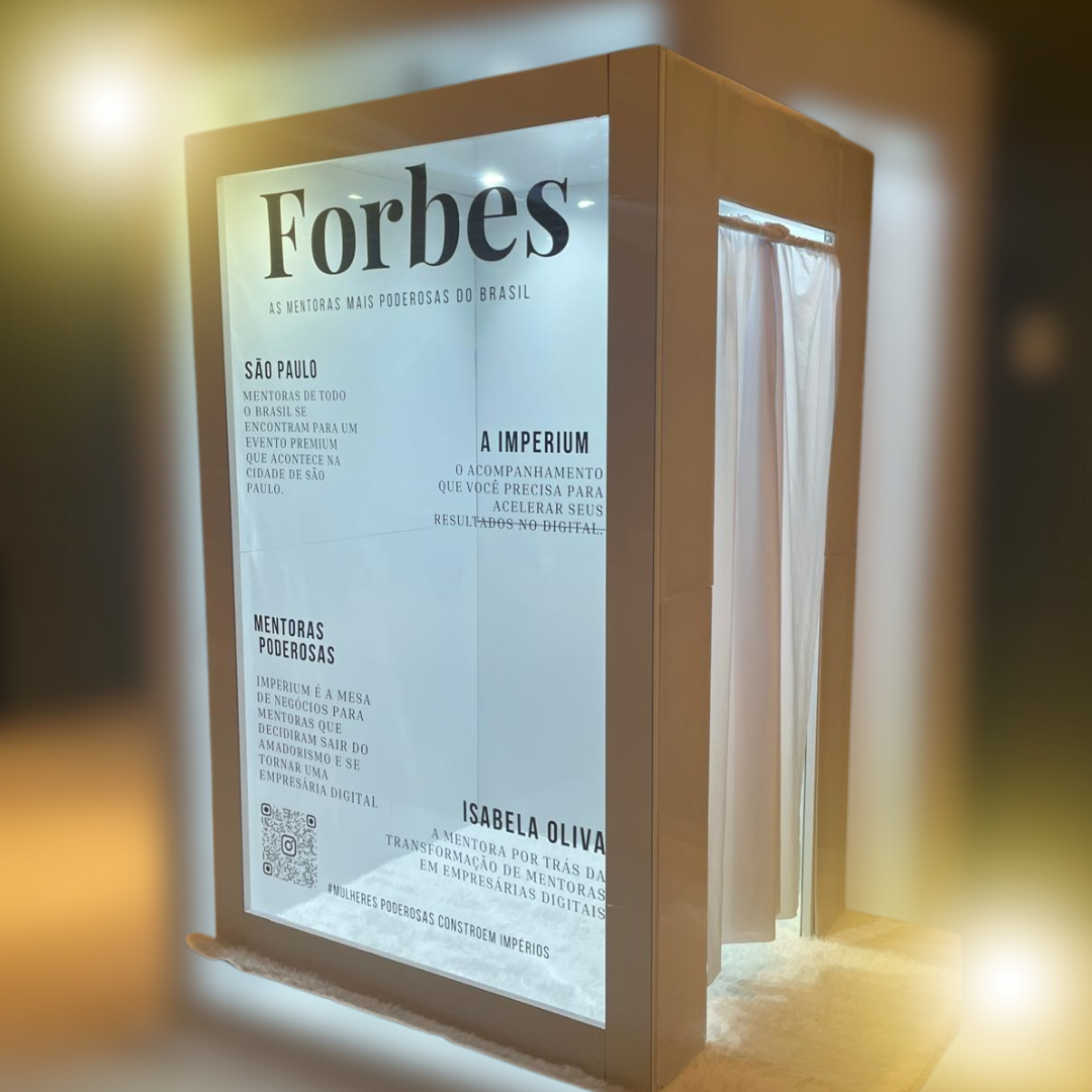 A "Cabine Revista" é uma experiência interativa e personalizada, onde os usuários podem tirar fotos como se estivessem na capa de uma revista famosa.