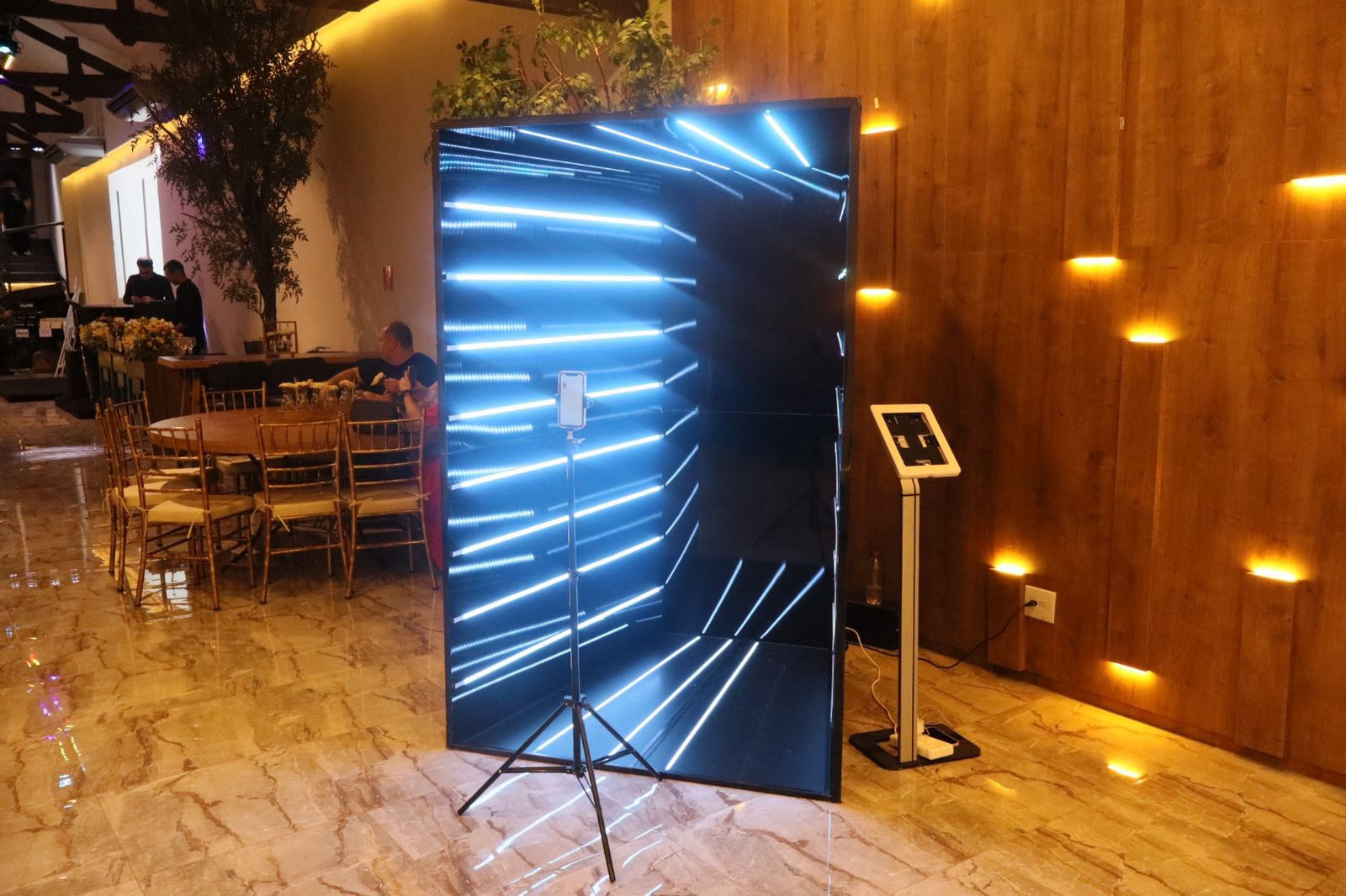 Transforme seu evento com o Túnel Infinito de LED, unindo luxo, sofisticação e tecnologia para uma imersão visual única. Encante os sentidos com luzes em movimento e momentos instagramáveis.